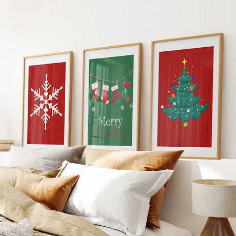 Modern Xmas Holiday Decor Nursery Wall Art Prints