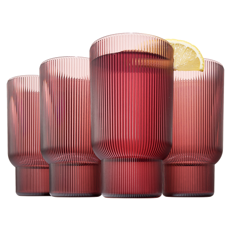 Eze Acrylic Ribbed Highball Glassware, Set of 4