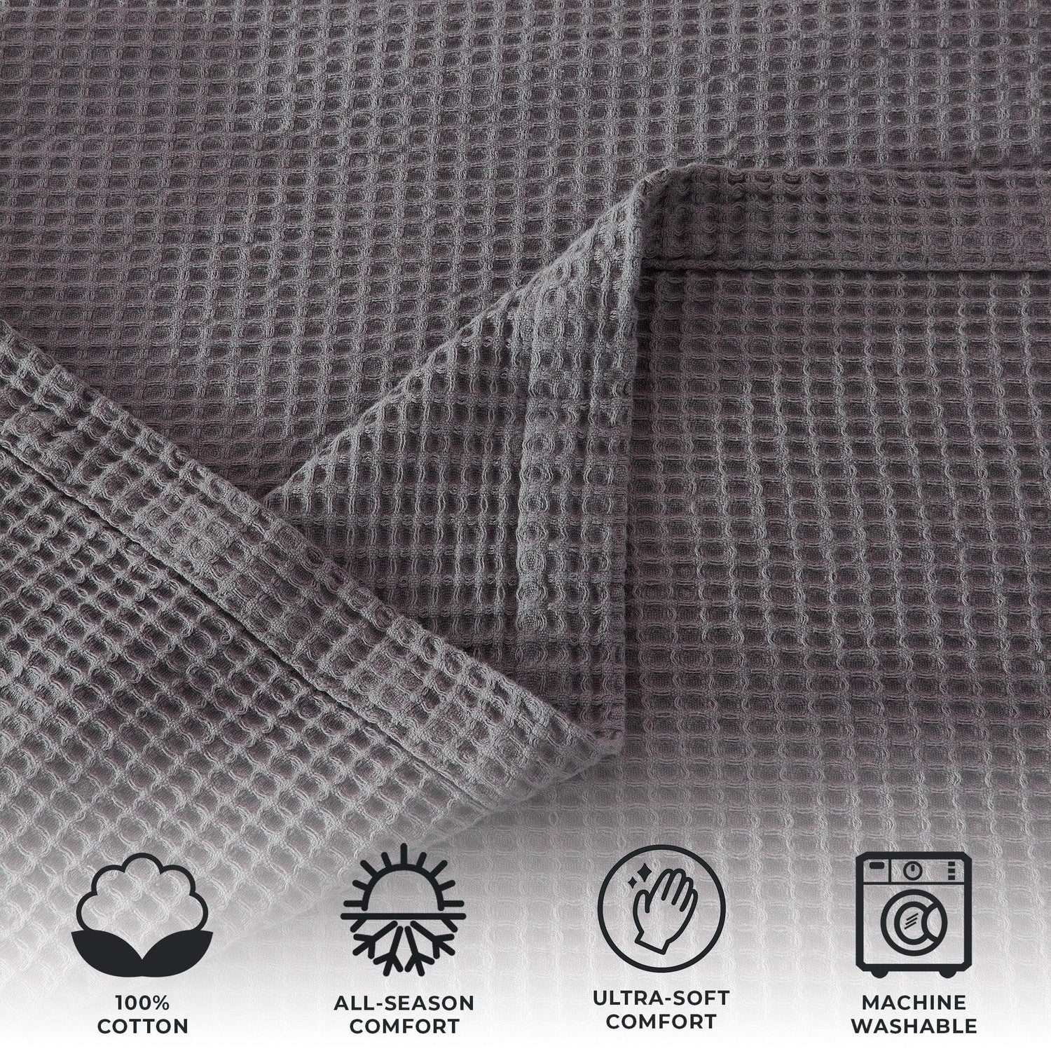 Complete a serene bedding set with our 100% cotton waffle weave blanket. This cotton blanket offers a lightweight warmth that is great as another layer in your bedding or as a lightweight blanket. This blanket offers many uses as a beach blanket or picnic blanket, or add it to any room for an update to your decor. This collection's wide color palette and waffle weave texture give you visual interest that will easily elevate your bedroom decor. This blanket features quality cotton that offers breathability and a lightweight feel that is perfect for summer.