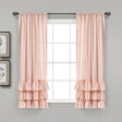 The Allison Ruffle Window Curtain Panel Set is sold by the pair and each individual panel measures 40 inches wide and is available in length options of 45, 63, 84, 95 or 108 inches. This set is currently available in seven color options: white, ivory, aqua, light gray, neutral, dark gray and pink blush (some colors may not be available in all sizes).