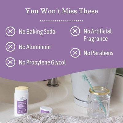 Packaged in Eco Smart® containers that begin to degrade in days, not decades, this clean deodorant contains organic lavender, calendula, and coconut oil, and is formulated for everyone, especially sensitive skin, teens, pregnancy and breastfeeding.