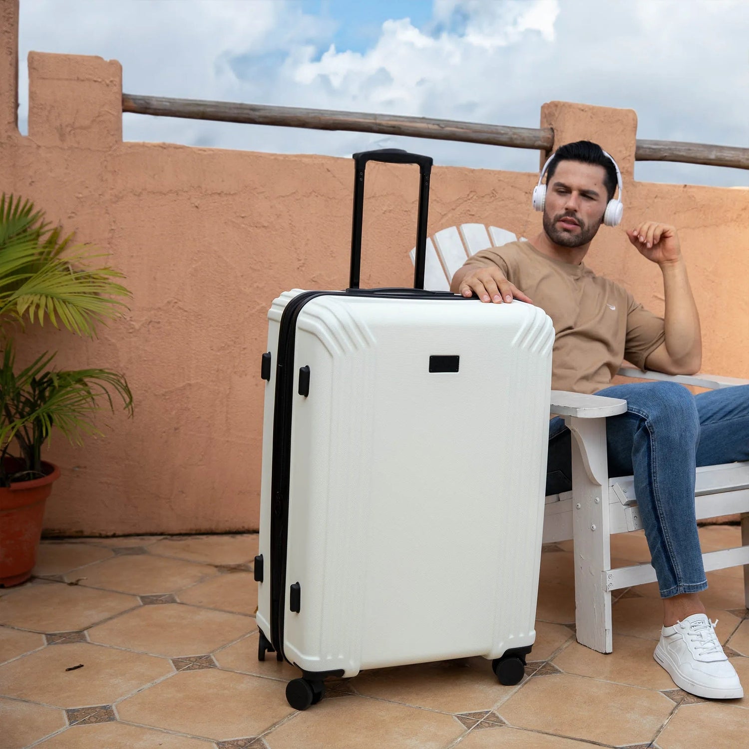 But that's not all! The Evalyn 3 Piece Luggage Set also features multiple interior pockets and compartments, allowing you to store your belongings in a neat and organized manner. The expandable design provides extra packing space for those times when you need to bring a little bit extra. The Evalyn boasts a robust, thick polycarbonate+ABS casing, ensuring maximum protection while maintaining a lightweight profile. The luggage interior is adorned with a resilient polyester fabric featuring a zippered compartment with multiple pockets on one side and compression straps on the other. Navigate with grace courtesy of our four 360° dual wheels and lightweight multi-tier trolley handle, promising excellent mobility and maneuverability.