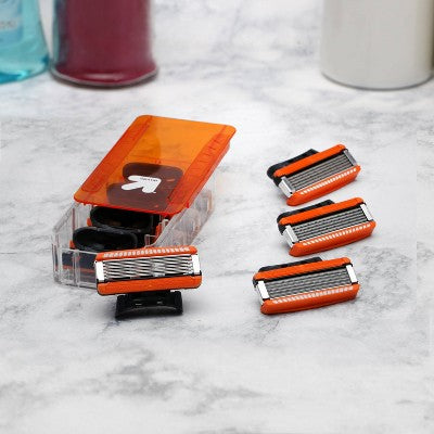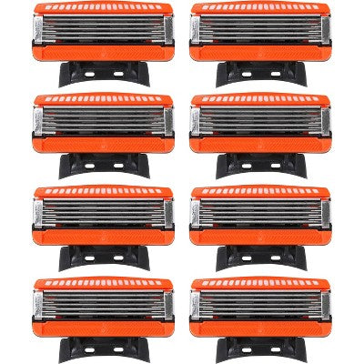 Get premium affordable refill cartridges that fit your Fusion® handle and budget. Featuring five coated blades for a close, comfortable shave, the cartridges also combine unique blade guards and vitamin E-infused lubricating strips to help reduce skin irritation. The built-in trimmer lets you shape your goatee or sideburns and makes it easy to shave hard-to-reach areas, plus the whole cartridge is designed to last up to one month for a noticeably clean shave that keeps on giving. Always have fresh blades on hand when you pick up the Men’s Five-Blade Replacement Cartridges 8-Count from up&up™br />100% Satisfaction Guaranteed.