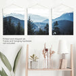 Navy Blue Mountain Forest Triptych. Nordic Landscape Art