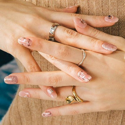 Step into the world of 'N Coco Tweed,' where elegance intertwines with the charm of blush pink, the sophistication of tweed patterns, and the sparkle of rhinestones. Ohora's Semi Cured Gel Nail Strips revolutionize at-home manicures with their long-lasting wear and salon-quality finish, achievable in just minutes. Emphasizing ease, these strips are notably simple to apply and remove, catering to both beginners and professionals. Its adorable design and user-friendly nature make 'N Coco Tweed' a perfect blend of style and convenience.