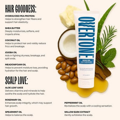 Refresh your signature blue with Overtone’s Indigo Iris Color Depositing Daily Conditioner — a clean, color-loving conditioner designed to maintain vibrancy and hair health between dye days. Formerly known as Blue for Brown Hair, this semi-permanent vibrant blue hair color deposits bold, blue purple-toned color in just 3–5 minutes, without the need for bleach or harsh chemicals.