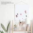 This summer print shows balloons of different bright colors floating in the sky. This composition creates a good mood and favorable atmosphere, so it's perfect for a kid's room. Try it in thin wood frames.