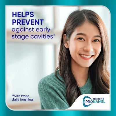 Sensodyne Pronamel Clinical Enamel Strength Whitening Action Toothpaste is our best enamel care science yet (1). Backed by 17 years of clinical research and trials, Pronamel Clinical Enamel Strength provides 3x stronger enamel protection (2). This fluoride toothpaste repairs 66% of acid-weakened enamel micro-damage (3) and provides 24/7 enamel protection help stop early-stage decay (4). The dual foaming system with micro polishing action provides 40% greater whitening action (5) and is enamel safe. Twice a day, enjoy this gentle foaming action toothpaste that freshens breath and keeps teeth staying shiny and white (4). Use a clear aligner? 28% of clear aligner wearers develop at least one new early-stage cavity. Pronamel Clinical Enamel Strength helps stop early-stage cavities (4). For strong teeth for life (6), choose Pronamel the #1 Dentist Recommended Brand for Protecting and Strengthening Enamel.
