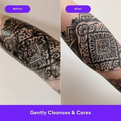 Prioritize the well-being of your fresh ink with our tattoo cleanser. Ideal for early-stage healing, it’s a safe solution for removing impurities and excess ink from newly-done tattoos. The specially crafted tattoo care formula not only cleans but calms inflammation, reduces irritation, and aids damaged skin for infection-free recovery. Pair this fragrance-free, hypoallergenic cleanser with your aftercare product for a cleaner and healthier tattoo healing journey.