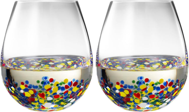 Elevate your drinkware with these hand blown Mexican wine glasses featuring a vibrant confetti rock design. Each glass is uniquely crafted by artisans, blending artistic flair with modern elegance. The colorful, festive pattern makes them perfect for any celebration, from weddings and anniversaries to holiday cocktail parties. Made from durable, break resistant glass, they’re both reusable and dishwasher safe for everyday convenience. Their elegant design adds charm to your kitchen, barware, or table setting. A collectible and functional piece of glassware, ideal for entertaining or gifting. Celebrate with artistic style and timeless craftsmanship in every sip.