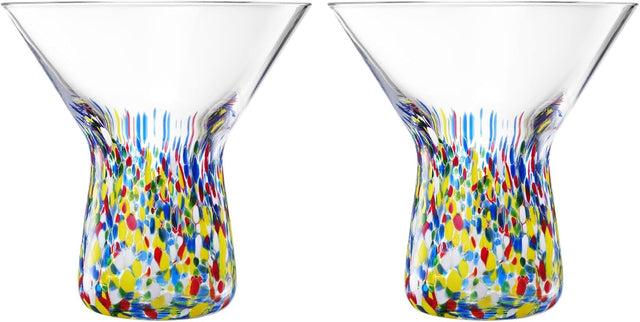 Elevate your drinkware collection with these hand blown Mexican martini glasses, featuring a vibrant confetti design that blends artistic flair with festive charm. Each stemless glass is handcrafted by skilled artisans, making it a unique addition to your barware or kitchen. Perfect for cocktails, margaritas, champagne, water, wine, or dessert, these durable and reusable glasses offer modern comfort with their elegant shape and stable base. The colorful pattern adds a bold aesthetic to parties or everyday use, making them as decorative as they are functional. Whether for entertaining or gifting, this collectible set is a standout piece of tableware that brings beauty, culture, and versatility to any celebration.
