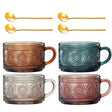 Tonal Hobnail Glass Mugs with Four Gold Spoons, Set of 4. 2.7"H X 4.0" dia. 15 ounces.