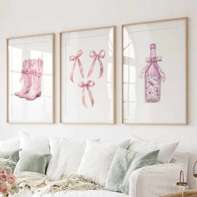 Trendy Pink Wall Art Prints Preppy Room Decor Set