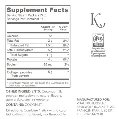 Our Vanilla Collagen Creamer™ is a healthy, delicious addition to your morning coffee. It has healthy fats from organic coconut milk powder, plus 10g of collagen peptides sourced from grass-fed, pasture-raised bovine. Paleo Friendly and Whole30® Approved, our vanilla creamer is free of dairy, soy, carrageenan, gluten, artificial sweeteners and added sugars.