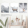 Deer is a wild animal that you don't meet in the metropolis in your everyday life! This creature looks especially beautiful in a winter forest landscape. That's a good reason to decorate your home with this wall art set. It looks adorable in black frames with mat!